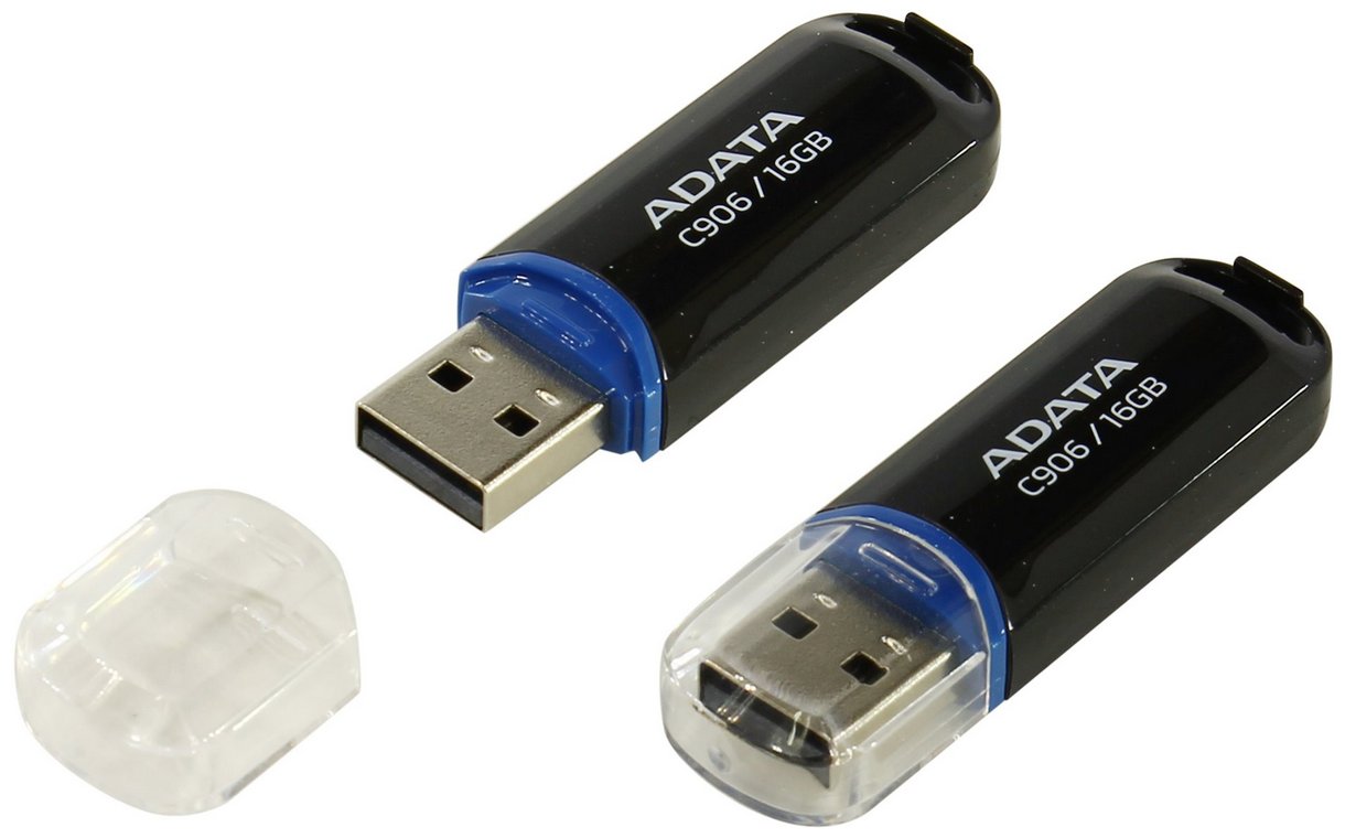 - 16GB USB2.0 Flash Drive ADATA "C906", Black, Plastic, Classic Cap (R/W:18/6MB/s)