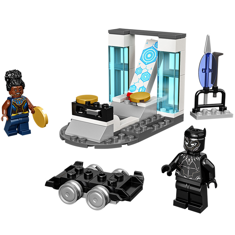 „Laboratorul lui Shuri” Include minifigurine Shuri și Black Panther, un shooter de discuri, accesorii și o cărămidă de pornire pentru a accelera clădirea Vârsta recomandată: 4+ Număr de piese: 58 Piese