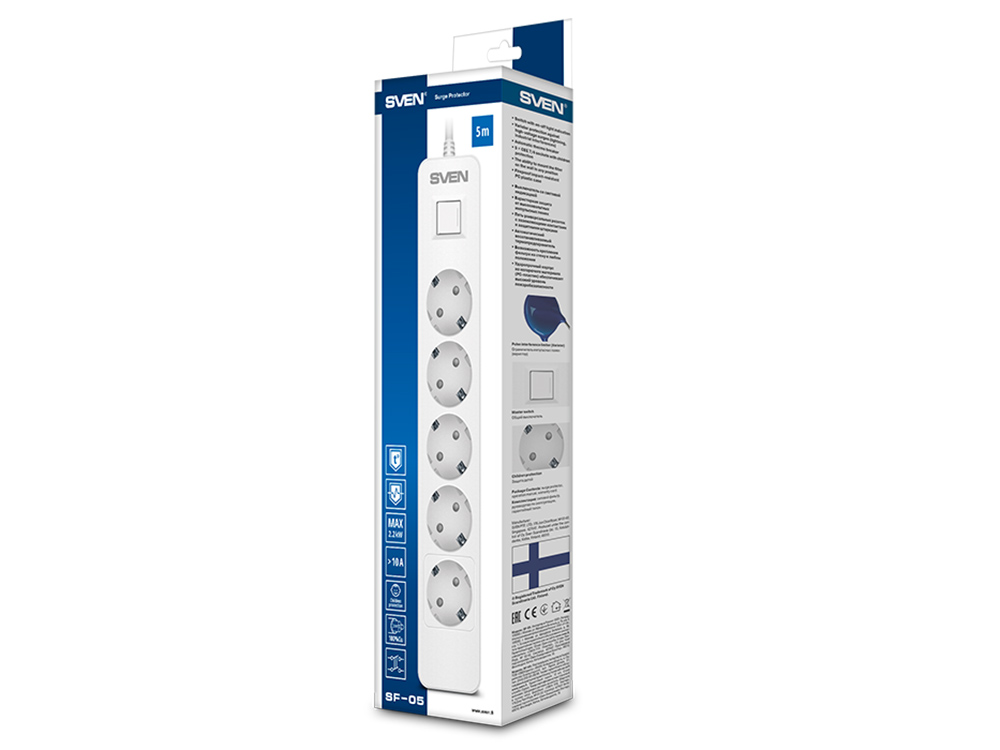 - Prelungitor electric SVEN SF-05, 5 Prize, 5m, Alb