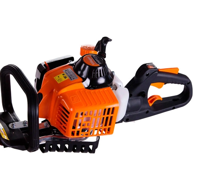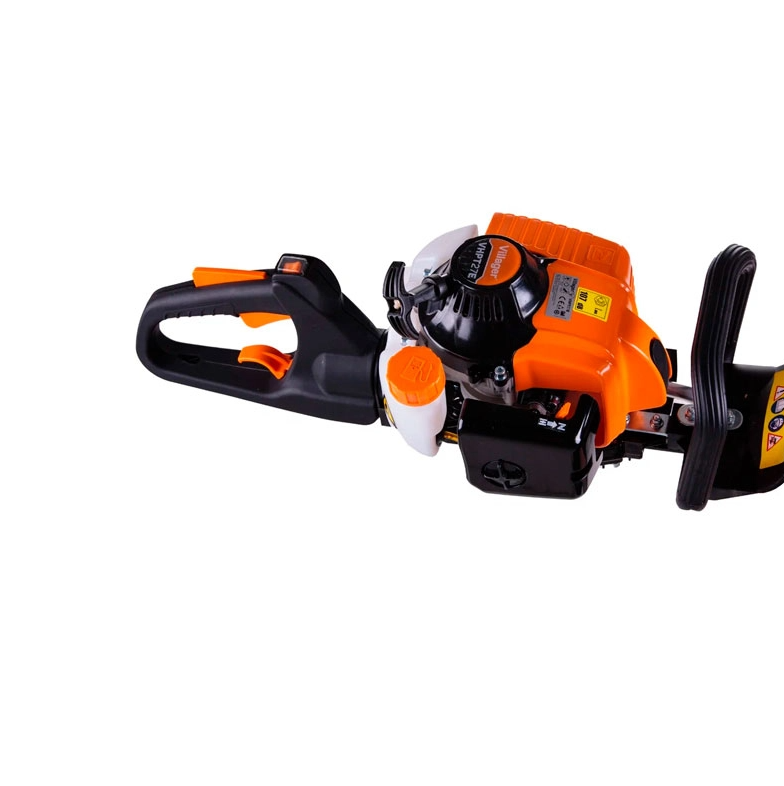 Trimmerul pe benzină Villager VHPT 27 E este echipat cu un motor în doi timpi, răcit cu aer, conform standardelor EURO II. Ideal pentru utilizare profesională și de către grădinarii amatori, motorul de 22,5 cm³ dezvoltă o putere de 0,7 kW, asigurând cuplu constant și performanță ridicată. Capacitatea rezervorului de carburant de 0,35 litri oferă autonomie suficientă pentru lucrări îndelungate fără opriri frecvente. Lamelele cu lungimea totală de 600 mm permit acoperirea rapidă a suprafețelor extinse de gard viu. Lungimea efectivă de tăiere de 500 mm reduce numărul de treceri necesare și crește eficiența procesului de tăiere. Pasul dinților de 35 mm este optim pentru prinderea și tăierea crengilor de diferite grosimi, de la cele subțiri la cele medii. Sistemul de arcuri antivibrații minimizează senzația de tremur și oboseala mâinilor, oferind un plus de confort în timpul utilizării. Mânerul ergonomic și designul echilibrat asigură o prindere stabilă și un control precis al trimmerului. Trimmerul funcționează complet fără cablu, oferind libertate totală de mișcare și acces facil în zone greu accesibile. Pornirea rapidă și fiabilă este asigurată de sistemul clasic cu arc și frână electrică integrată pentru siguranță. Nivelul redus de vibrații protejează articulațiile și reduce oboseala chiar și în cazul sesiunilor prelungite. Carcasa robustă și componentele interne rezistente la uzură garantează durabilitate și funcționare pe termen lung. Greutatea de 4,65 kg echilibrează mobilitatea și stabilitatea, permițând lucrul eficient fără efort excesiv. Datorită motorului pe benzină, acest trimmer nu este delimitat de lungimea cablului electric și poate fi folosit oriunde în grădină. Întreținerea periodică, inclusiv curățarea filtrului și ajustarea amestecului carburant, asigură menținerea performanțelor optime. Villager VHPT 27 E este partenerul ideal pentru conturarea gardurilor vii și îngrijirea tufărișurilor, combinând puterea cu ergonomia și fiabilitatea.