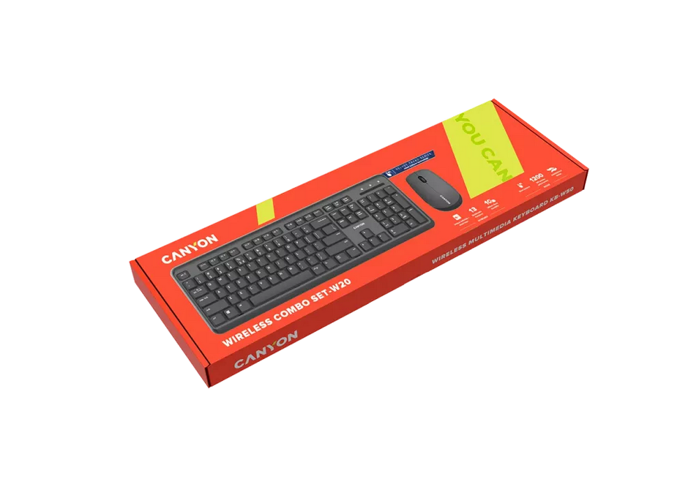 - Клавиатура и мышь Canyon W20, Беспроводное, Чёрный