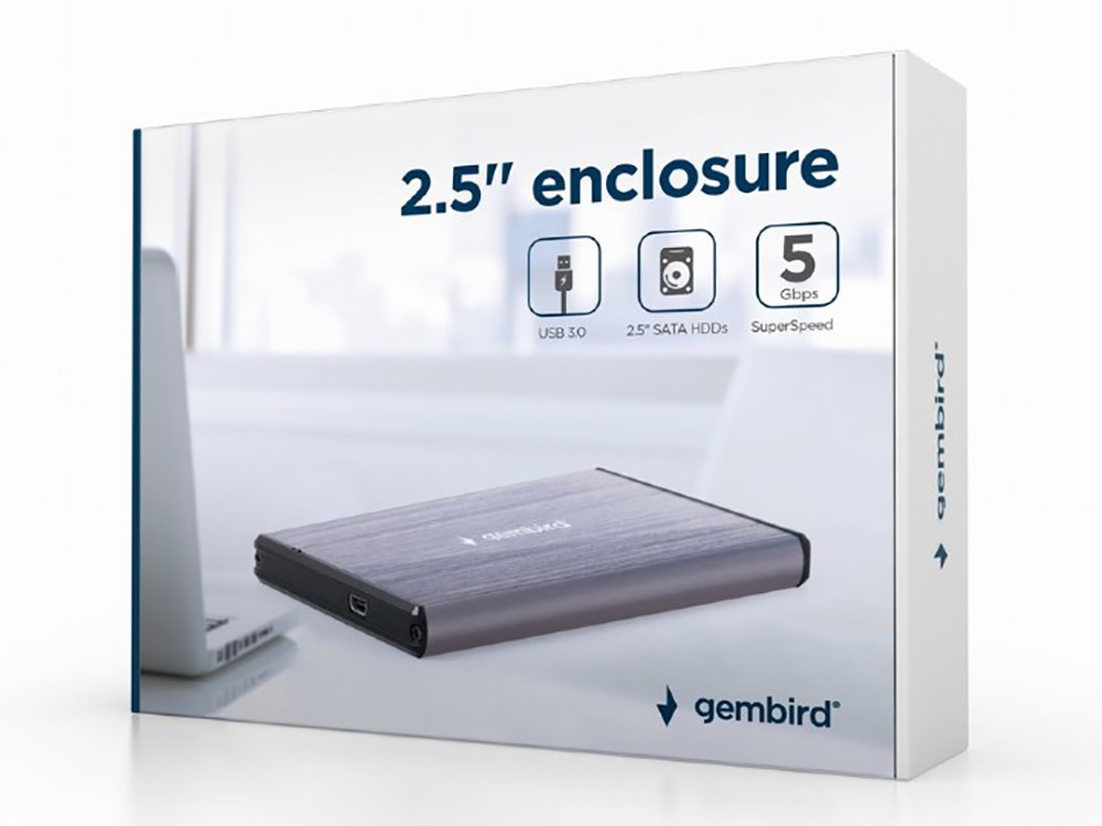 - 2.5" SATA HDD External Case miniUSB3.0, Aluminum Light-Grey, Gembird "EE2-U3S-3-LG"