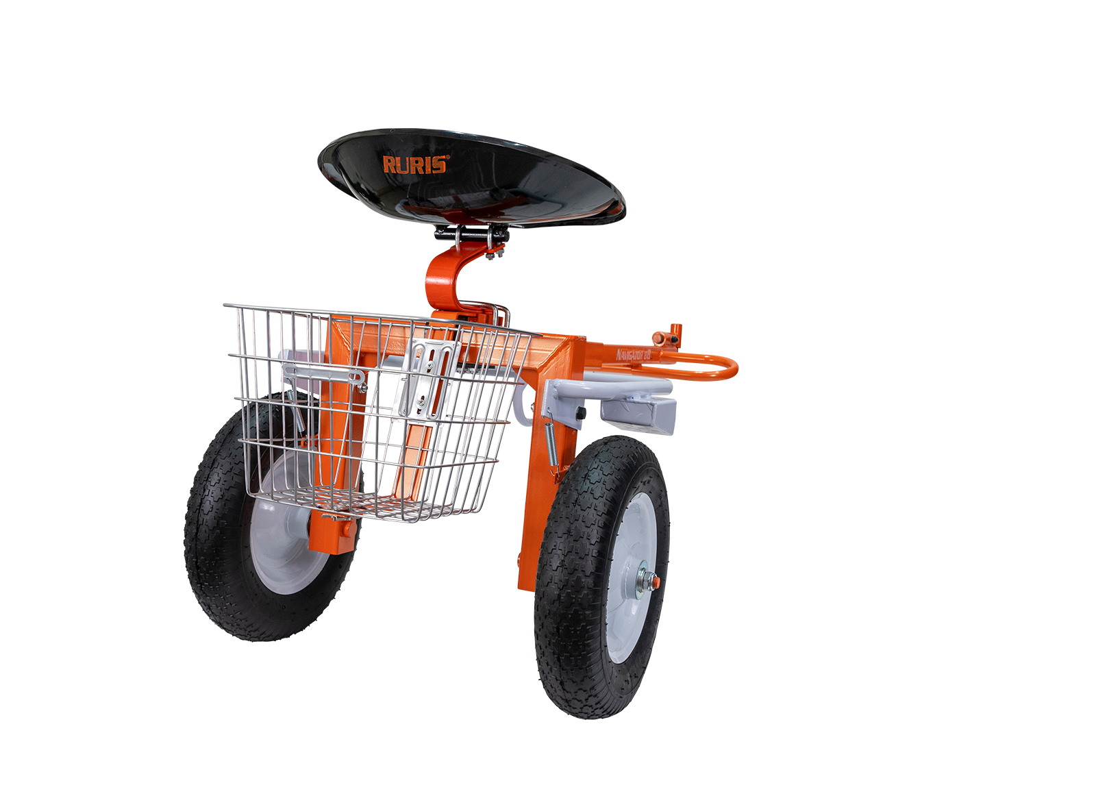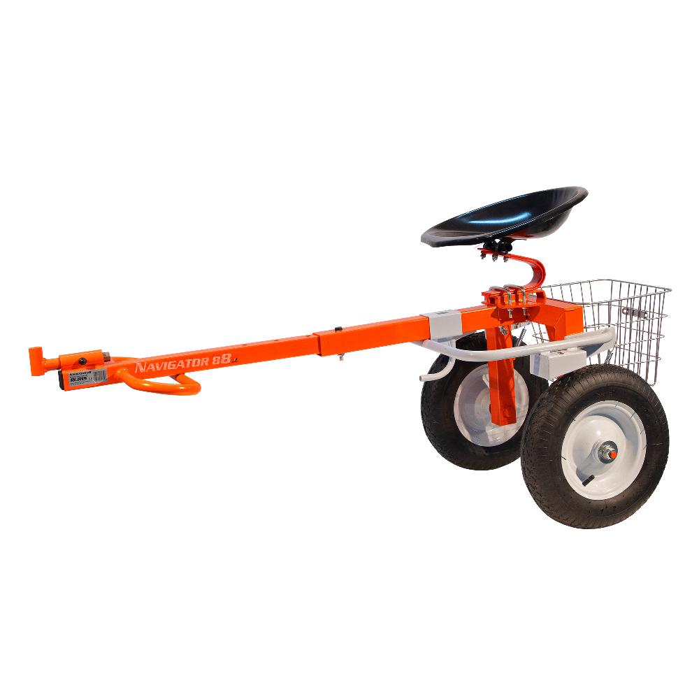 Accesoriul tractat Navigator 88 se cuplează foarte ușor la motosapele RURIS. Acesta beneficiază de o frână dublă ce poate fi acționată cu piciorul, dar și de un scaun ergonomic și de un spațiu de depozitare situat în spate. Cuplat la motosapă, acesta reprezintă un mijloc de transport rapid și comod pentru orice utilizator. Accesoriul nu este omologat și echipat pentru a circula pe drumurile publice sau în pantă/rampă cu o inclinație mai mare de 10 grade.