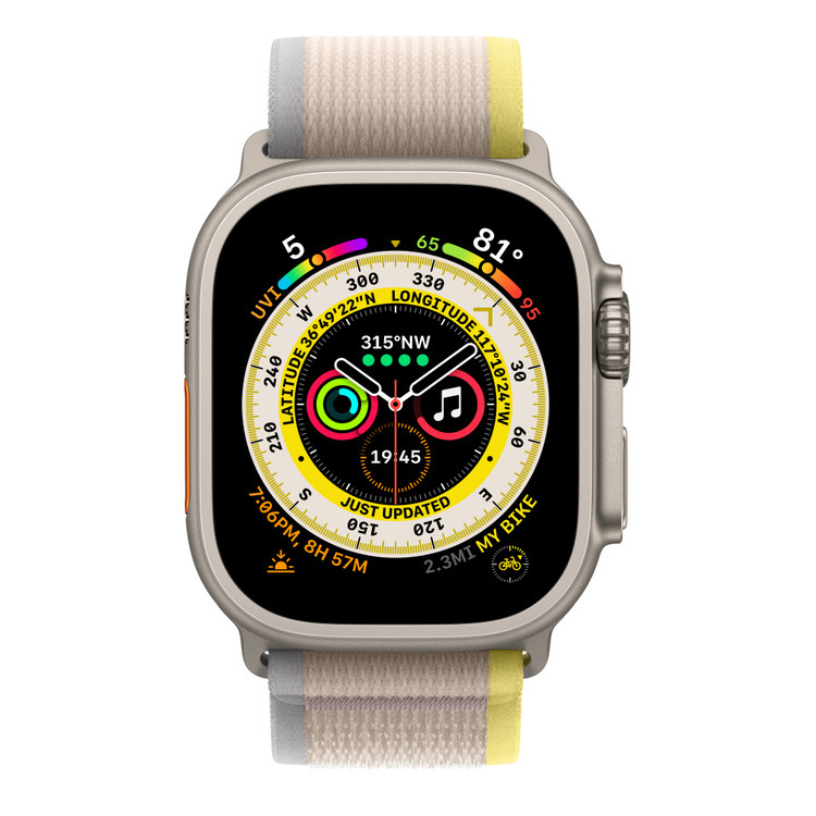 - Apple Watch Ultra GPS + Cellular 49mm Titanium Case with Yellow/Beige Trail Loop - M/L, MQFU3