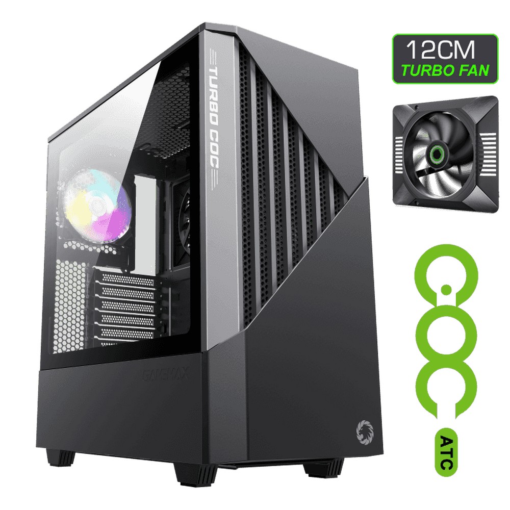 - Carcasă PC Gamemax Contac COC, Midi-Tower, ATX, Negru/Gri