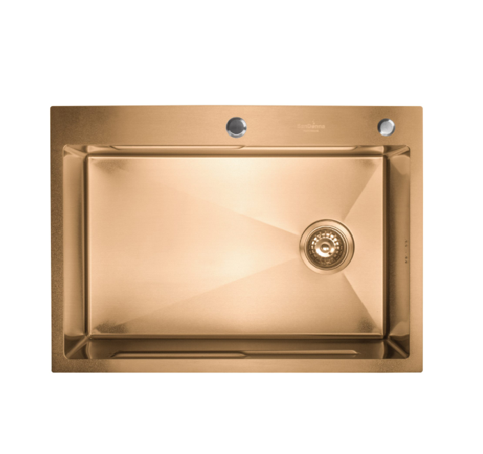 Chiuveta handmade SanDonna HD7050 cu finisaj auriu aduce un plus de eleganță și rafinament în orice bucătărie modernă. Cu dimensiuni de 700x500 mm și o adâncime de 230 mm, oferă spațiu generos pentru spălarea vaselor și a alimentelor. Este realizată manual din materiale de înaltă calitate, având o grosime de 3.0 + 1.0 mm, ceea ce îi conferă durabilitate și stabilitate. Finisajul auriu oferă un aspect de lux, fiind în același timp ușor de întreținut. Chiuveta este echipată cu un scurgător practic, un dozator integrat pentru săpun și un tocător util, crescând funcționalitatea în zona de lucru. Designul modern și atent lucrat transformă chiuveta într-un element central al bucătăriei. Este ideală pentru cei care doresc să îmbine stilul sofisticat cu utilitatea zilnică. Alegerea perfectă pentru o bucătărie exclusivistă și eficientă.
