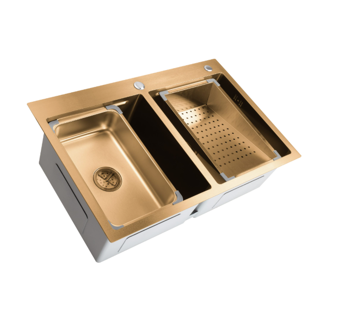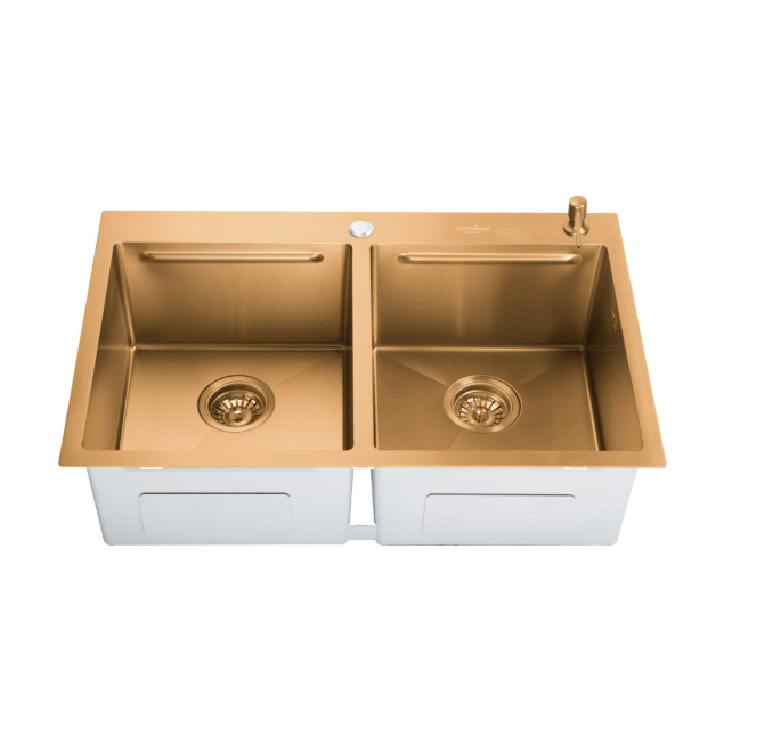 Chiuveta HD7850DR este un model premium, realizat manual din inox de calitate superioară AISI304, recunoscut pentru durabilitatea și rezistența sa. Aceasta dispune de două cuve spațioase, fiecare având dimensiunea de 40×35.2 cm, oferind confort și eficiență în utilizarea zilnică. Grosimea inoxului este de 1 mm pentru cuve și 3 mm pentru marginea superioară, ceea ce asigură stabilitate și rezistență crescută. Forma dreptunghiulară și adâncimea de 230 mm permit spălarea facilă a vaselor de mari dimensiuni. Materialul este amagnetic, antiseptic și antifungic, fiind ideal pentru un mediu igienic în bucătărie. Chiuveta rezistă la șocuri mecanice, temperaturi înalte și agenți corozivi, oferind protecție împotriva ruginii. Designul modern și elegant se potrivește ușor în orice stil de amenajare interioară. Pachetul include dispenser de săpun, două tăvițe, un tocător practic, cleme de fixare și sifon. Accesoriile completează funcționalitatea chiuvetei, transformând-o într-un centru de lucru eficient. Este o alegere excelentă pentru cei care caută calitate, stil și utilitate într-un singur produs.