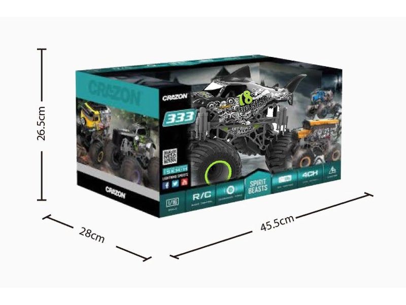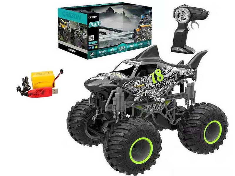 - Jucărie cu telecomandă Crazon Oversize Wheel Cross-Road, 1:16, Negru/Verde (333-19164B)