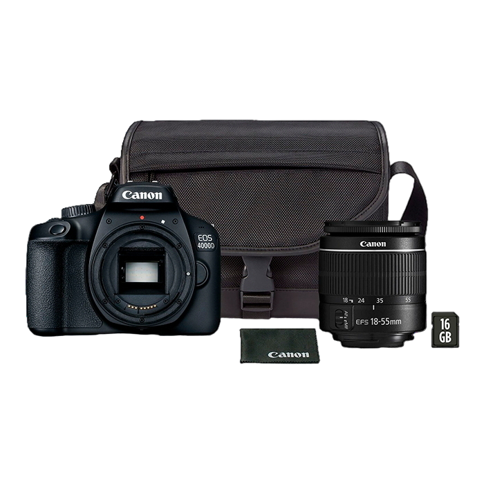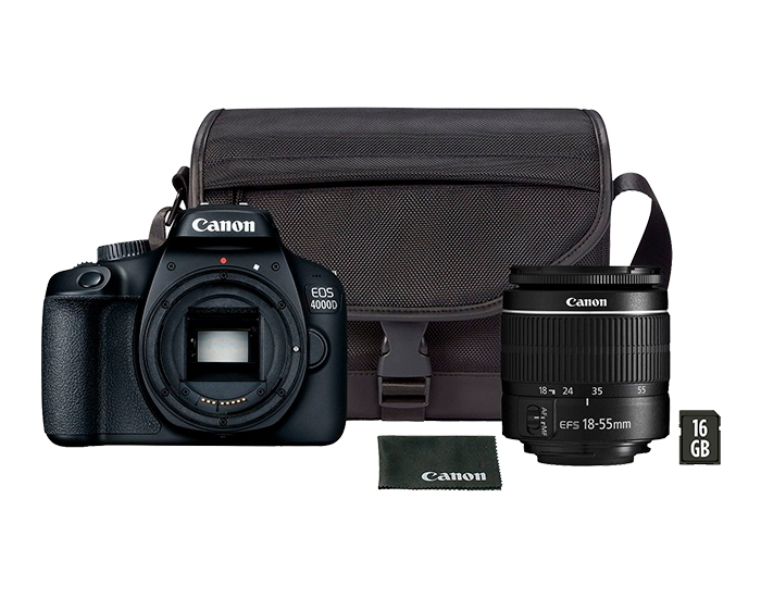 - Aparat foto DSLR Canon EOS 4000D & EF-S 18-55mm III + SB130 + 16GB, Negru