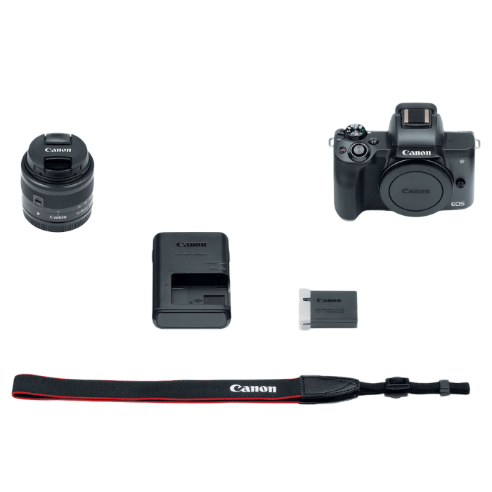 - Aparat Foto Mirrorless Canon EOS M50 + EF-M 15-45 IS, Negru