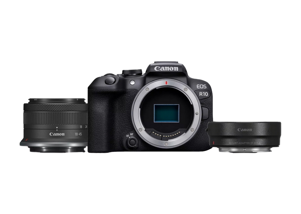 - Aparat Foto Mirrorless Canon EOS R10 + RF-S 18-45 IS STM & Adapter, Negru