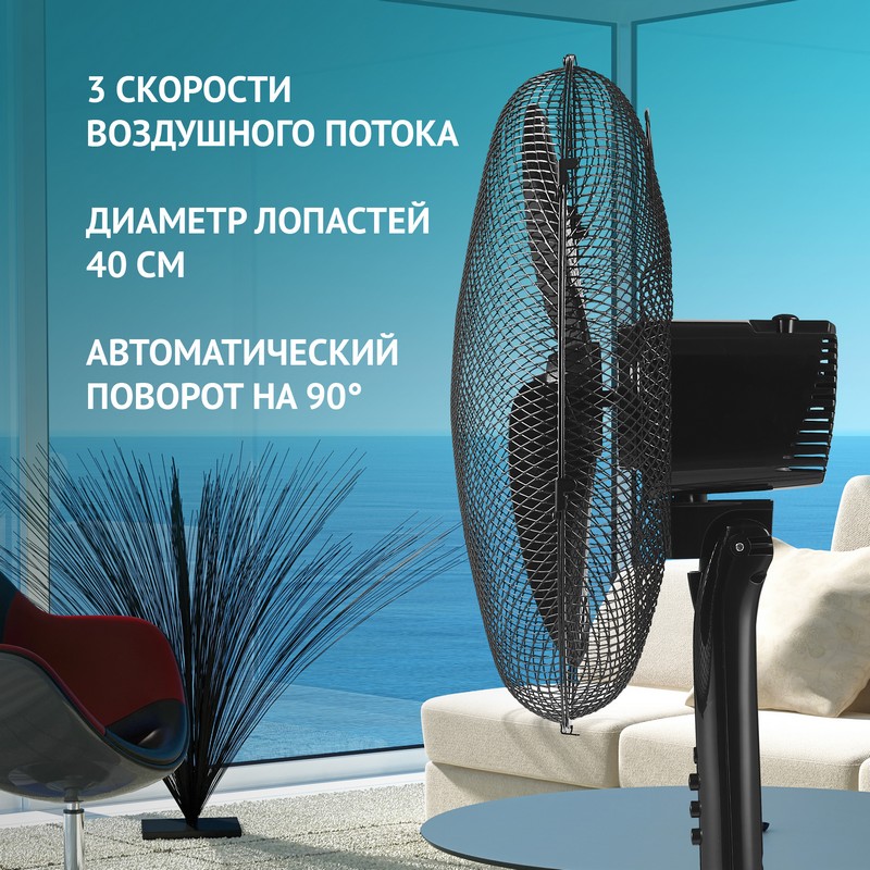 , Напольный, 40W, лопасть 40см, 3 скорости, Пульт, черный