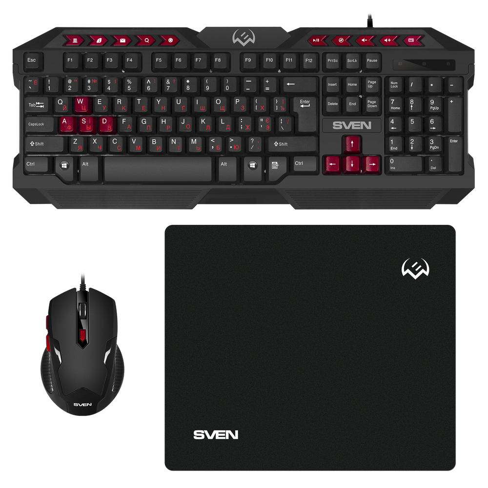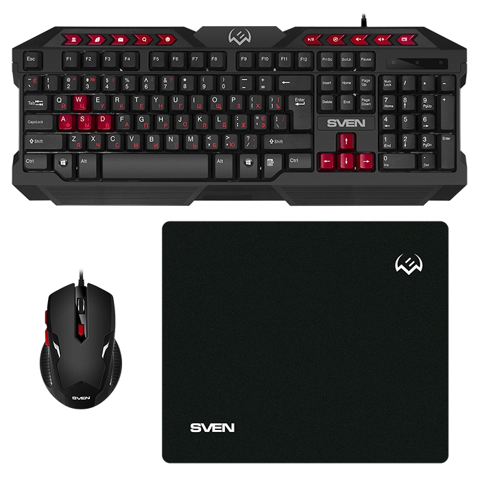 - Set Tastatură + Mouse + Mouse Pad SVEN GS-9200, Cu fir, Negru/Rosu