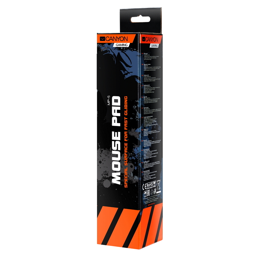 - Gaming Mouse Pad Canyon MP-5, 350 x 250 x 3 mm, Anti-fraying stitching, Anti-slip rubber base, Black