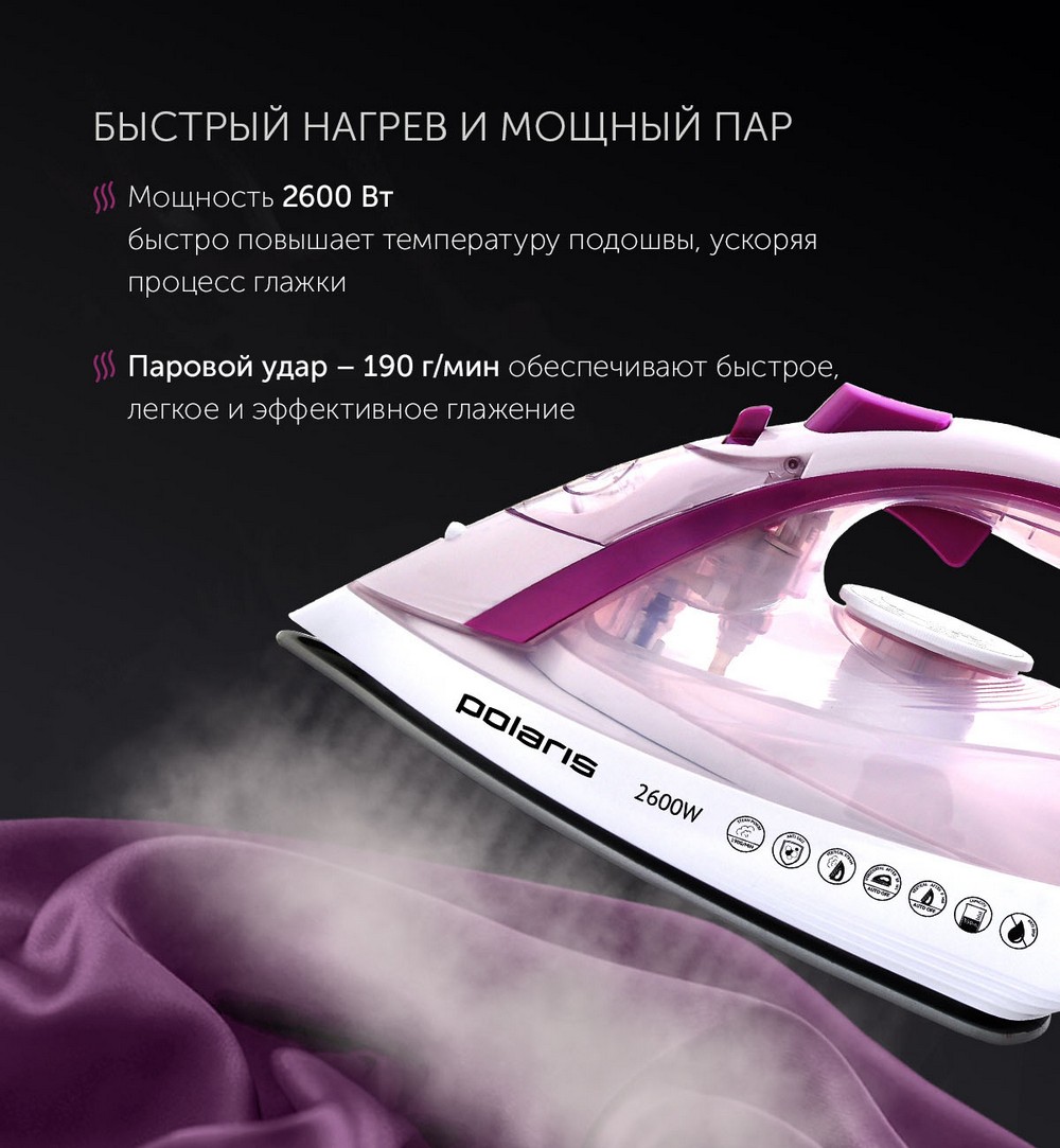 - Fier de călcat Polaris PIR2668AK, 2600W, Roz