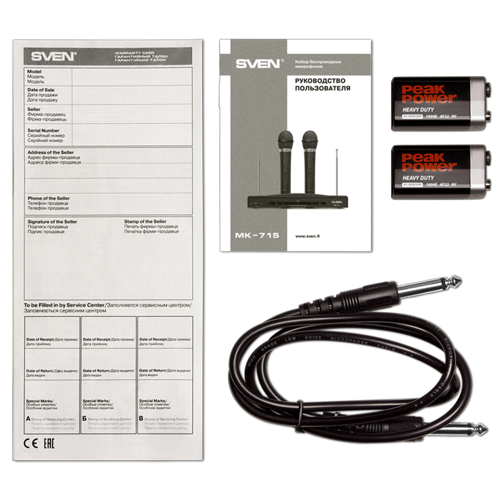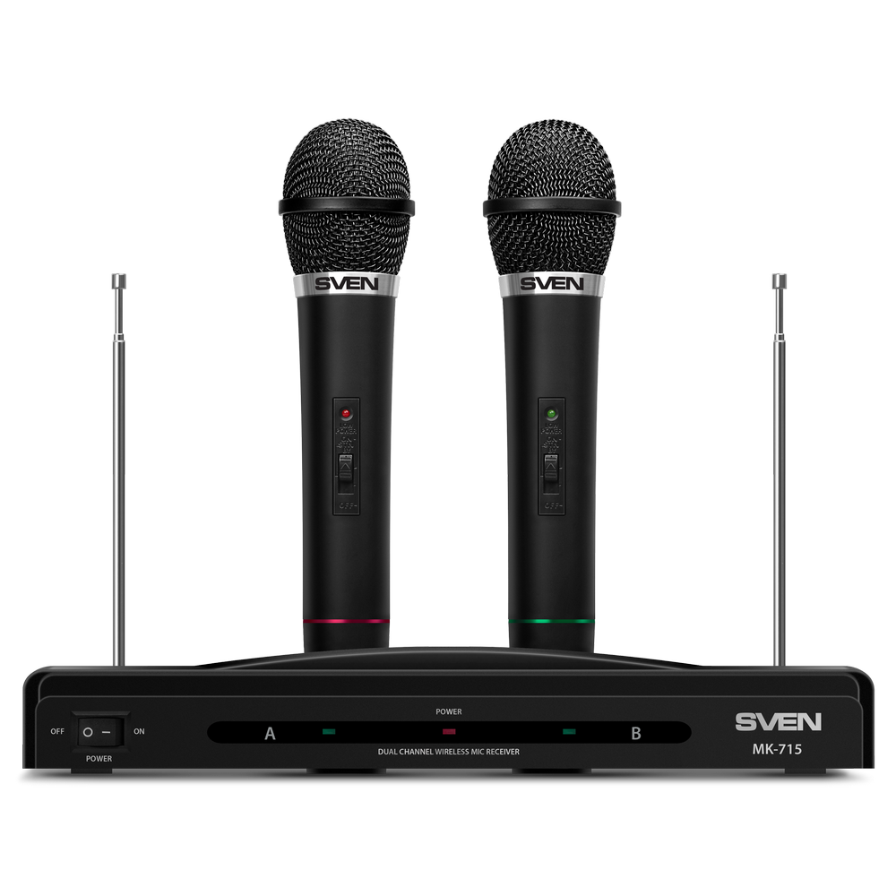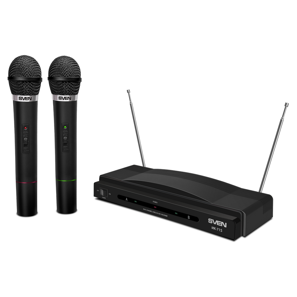 Karaoke Microphone SVEN "MK-715", Wireless 80.0Hz - 12.0 MHz, Microphone - 2 pcs