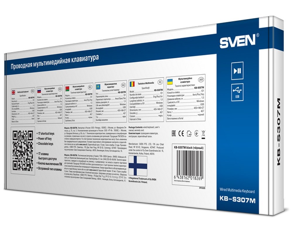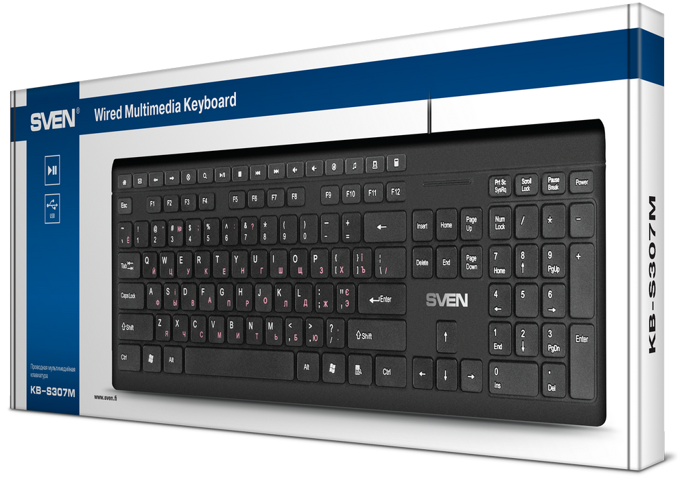 - Tastatură SVEN KB-S307M, Cu fir, Negru