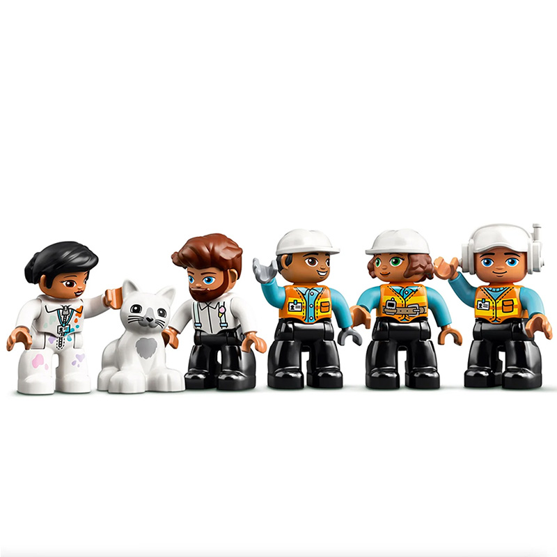 ”Macara turn și construcții” 5 figurine DUPLO și 4 vehicule - inclusiv un buldozer cu fricțiune Mașinile cu lumină și sunet Vârsta recomandată: 2+ Număr de piese: 123 Piese