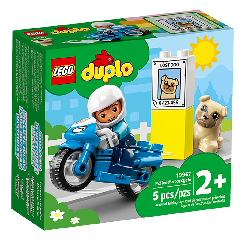 „Motocicletă de poliție” Setul include figurină agent de poliție, un câine, o motocicleta și un stand Vârsta recomandată: 2+ Număr de piese: 5 Piese