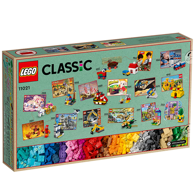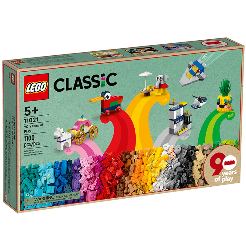 „90 de ani de joacă” Include 15 mini recreări ale unor jucării LEGO emblematice, de la o navă de pirați la un elefant sau un castel galben Vârsta recomandată: 5+ Număr de piese: 1100 Piese