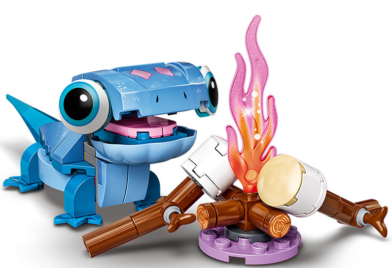 „Personajul construibil Bruni Salamandra” include o figurină de salamandră LEGO® construibilă, un mic foc de tabără de jucărie construibil, fulg de nea și 2 bezele de jucărie construibile pe bețe Vârsta recomandată: 6+ Număr de piese: 96 Piese