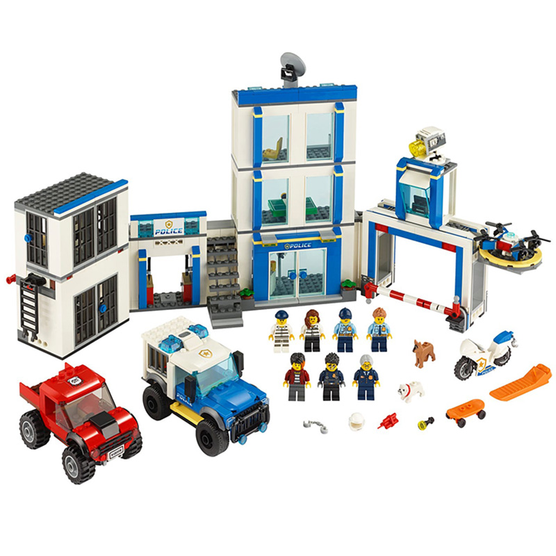"Secție de poliție" Include secția de poliție, 2 camioane, o motocicletă și o dronă 6 minifigurine, inclusiv Duke DeTain, Chief Wheeler și Daisy Kaboom, plus 2 figurine de câine Vârsta recomandată: 6+ Număr de piese: 743 Piese