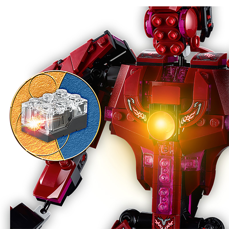 „În umbra lui Arishem” Include 4 minifigurine de supereroi Eternals – Ikaris, Sersi și Ajak și Kingo exclusivi – o figură Deviant, un Celestial articulat cu un cufăr luminos, 2 pumnale, 1 sabie, 2 mini trăgători și o lamă Vârsta recomandată: 7+ Număr de piese: 493 Piese