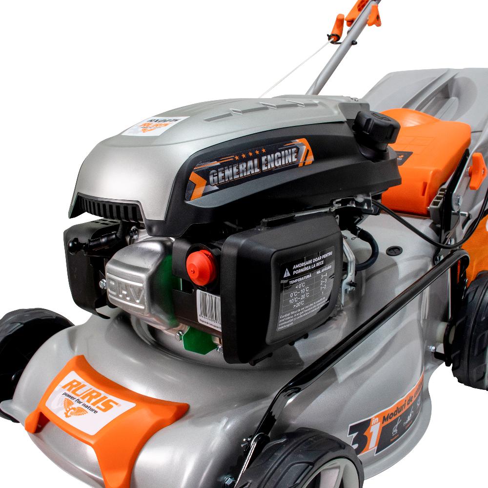 Mașina de tuns gazon RURIS RX221S este dotată cu un motor în 4 timpi de 3.5 CP, având o lățime de lucru de 42 centimetri. Acest model poate fi utilizat pentru tunderea ierbii pe o suprafață de până la 1500mp. Un aspect important pentru obţinerea unei peluze perfecte este înălţimea de tăiere a ierbii. La acest model, înălțimea de tăiere este cuprinsă între 25-75 mm, putând fi reglată în 5 trepte, prin acționarea dispozitivului lateral situat la baza şasiului. RURIS RX221S are trei funcții: colectare, evacuare în spate și mulching. Mașinile de tuns gazon RURIS sunt robuste și fiabile. Cuva șasiului este din oțel ambutisat ceea ce îi conferă o rezistență mai mare. Sistemul ergonomic de pliere al mânerului şi al sacului colector face ca mașina de tuns gazonul să fie simplu de depozitat sau de transportat. Cu mașinile de tuns gazon de la RURIS, grădinăritul devine mult mai simplu. Acestea sunt ușor de utilizat și întreținut, fiind soluția perfectă pentru îngrijirea gazonului.