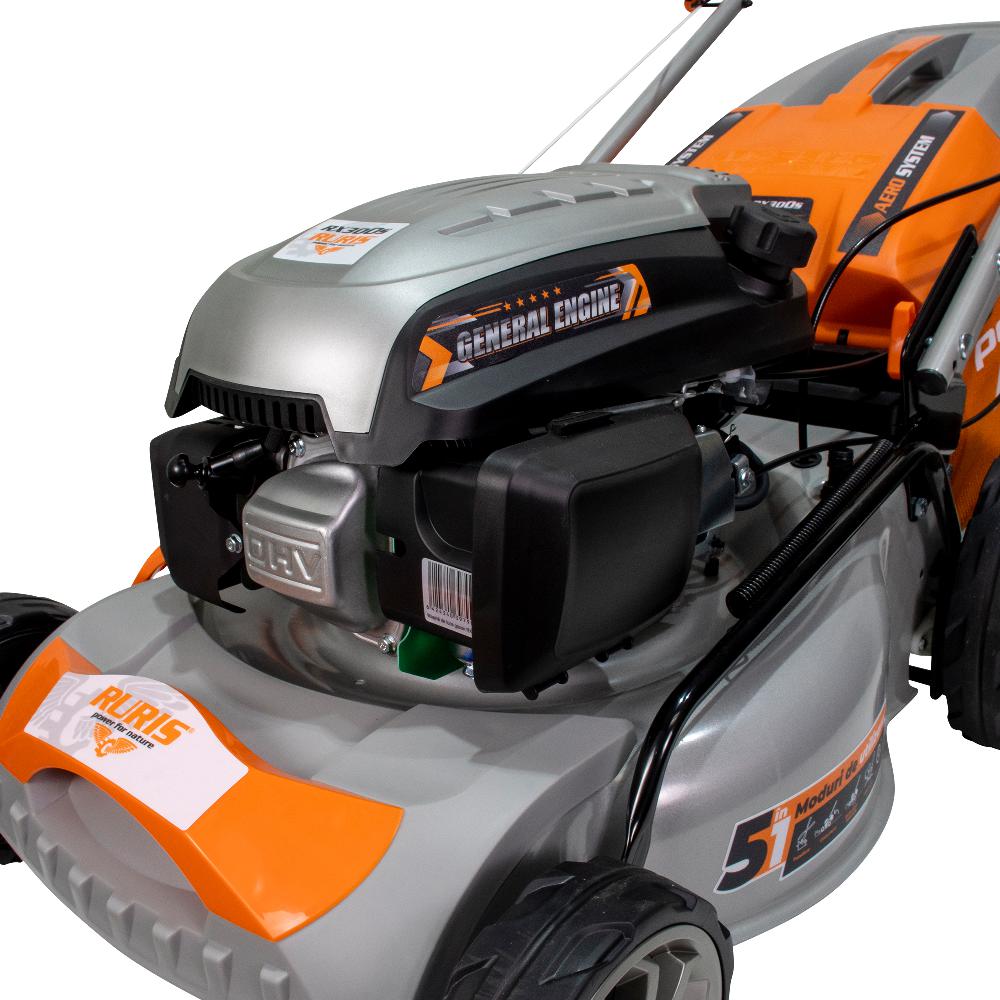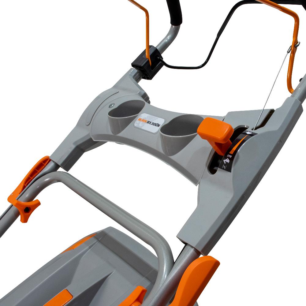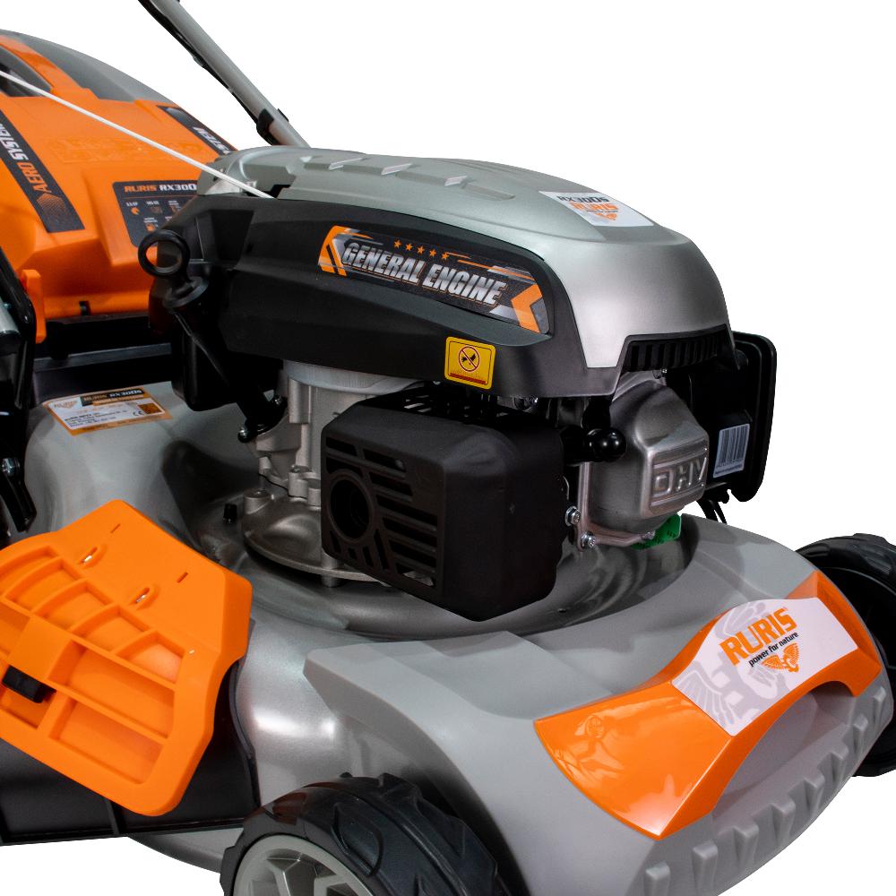 Mașina de tuns gazon RURIS RX300S este dotată cu un motor în 4 timpi de 3.5 CP, având o lățime de lucru de 46 centimetri. Acest model poate fi utilizat pentru tunderea ierbii pe o suprafață de până la 1500mp. Un aspect important pentru obţinerea unei peluze perfecte este înălţimea de tăiere a ierbii. La acest model, înălțimea de tăiere este cuprinsă între 25-75 mm, putând fi reglată în 7 trepte, prin acționarea dispozitivului lateral situat la baza şasiului.Cu RURIS RX300S beneficiați de 5 funcții într-o singură mașină de tuns gazon: colectare, evacuare în spate, evacuare în lateral, mulching și autocurățare. Diametrul mare al roţilor face posibil tăiatul gazonului şi în zonele înclinate ale solului. Totodată sistemul de autopropulsie oferă confort, eficienţă şi un timp redus de lucru.Mașinile de tuns gazon RURIS sunt robuste și fiabile. Cuva șasiului este din oțel ambutisat ceea ce îi conferă o rezistență mai mare. Sistemul ergonomic de pliere al mânerului şi al sacului colector face ca mașina de tuns gazonul să fie simplu de depozitat sau de transportat. Cu mașinile de tuns gazon de la RURIS, grădinăritul devine mult mai simplu. Acestea sunt ușor de utilizat și întreținut, fiind soluția perfectă pentru îngrijirea gazonului.