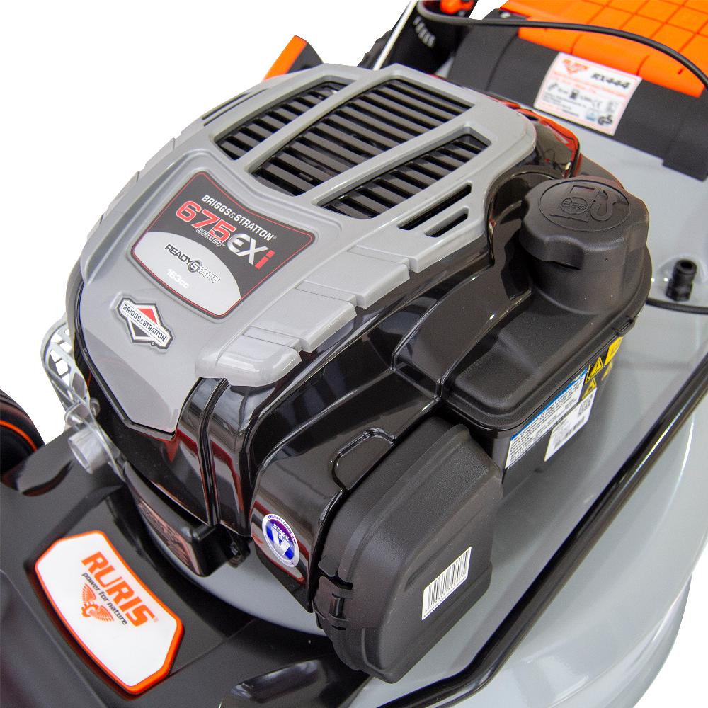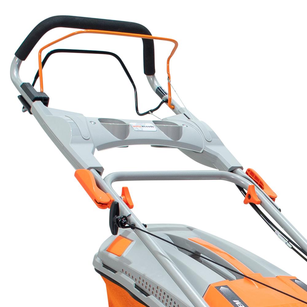 Mașina de tuns gazon RURIS RX444S este dotată cu un motor Honda de 4.6 CP, având o lățime de lucru de 51 cm. Acest model este eficient și ergonomic, fiind ușor de utilizat și garantând rezultate excelente fără a depune efort. Acest model intră în categoria produselor profesionale, destinate nu numai grădinilor, dar și a spațiilor verzi din zone industriale sau parcuri.Cu RURIS RX444S beneficiați de 5 funcții într-o singură mașină de tuns gazon: colectare, evacuare în spate, evacuare în lateral, mulching și autocurățare. La acest model, înălțimea de tăiere este cuprinsă între 25-75 mm, putând fi reglată în 7 trepte, prin acționarea dispozitivului lateral situat la baza şasiului. Diametrul mare al roţilor face posibil tăiatul gazonului şi în zonele înclinate. Cu acest model puteți lucra o suprafață de până la 2000mp. Totodată sistemul de autopropulsie oferă confort, eficienţă şi un timp redus de lucru.Mașinile de tuns gazon RURIS sunt robuste și fiabile. Cuva șasiului este din oțel ambutisat ceea ce îi conferă o rezistență mai mare. Sistemul ergonomic de pliere al mânerului şi al sacului colector face ca mașina de tuns gazonul să fie simplu de depozitat sau de transportat. Cu mașinile de tuns gazon de la RURIS, grădinăritul devine mult mai simplu. Acestea sunt ușor de utilizat și întreținut, fiind soluția perfectă pentru îngrijirea gazonului.