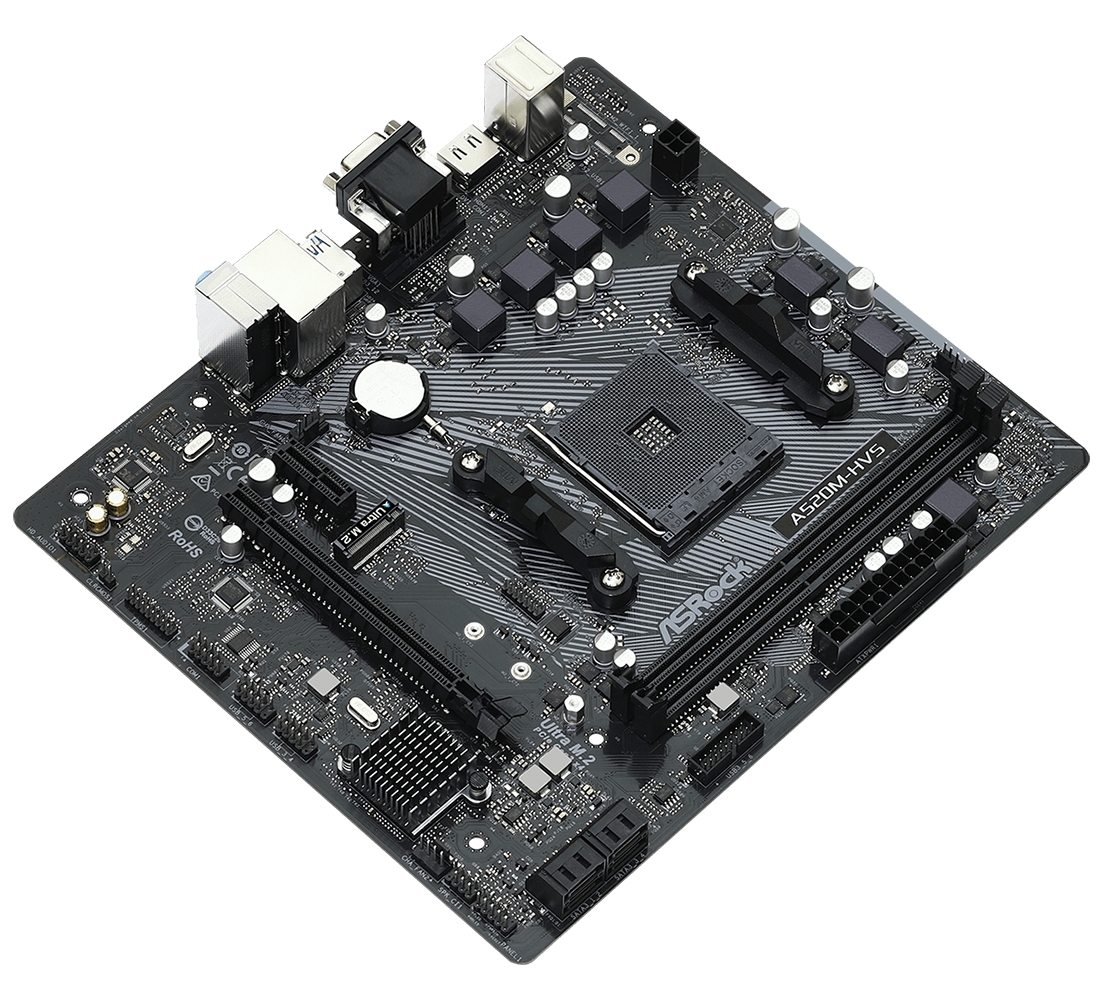 - Placă de bază ASRock A520M-HVS, AM4, AMD A520, Micro-ATX