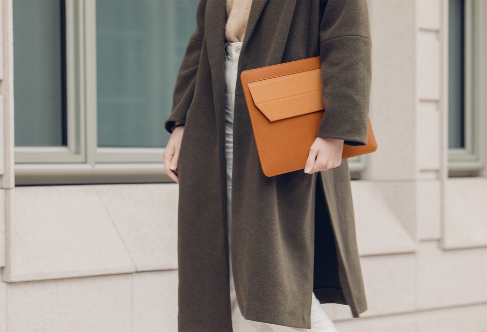 - Husă universală pentru Laptop Moshi Muse 3-in-1 Slim Laptop Sleeve, 13", Microfibră, Maro