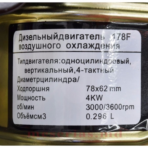 Motor diesel KAMA 178 FE de 6 CP cu o capacitate cilindrică de 296 cm³, care furnizează puterea necesară pentru prelucrarea eficientă a solului.