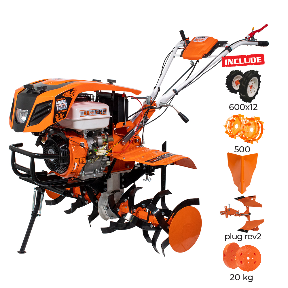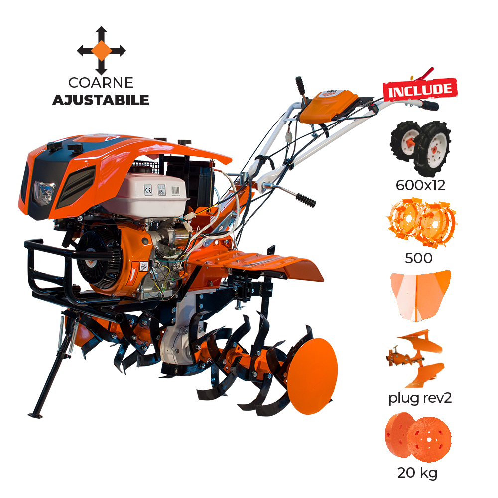 - Motocultor Ruris 918ACC + roti cauciuc 6.00-12+rarita+plug reversibil rev2+roti metalice 500+set contragreutati 20kg