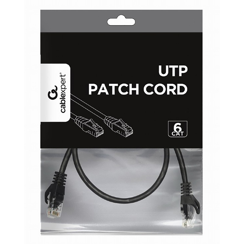 - Patch cord Cablexpert PP6U-0.25M/BK, Cat6 UTP, 0,25m, Negru
