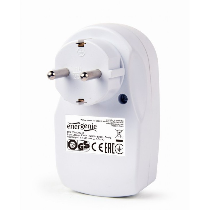 - Power socket built-in, Out:1xCEE 7/4, 2xUSB, White, protective shutters, Energenie EG-ACU2-02