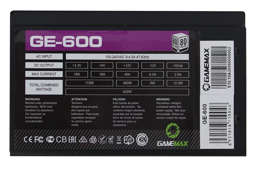 - Sursă Alimentare PC Gamemax GE-600, 600W, ATX, --