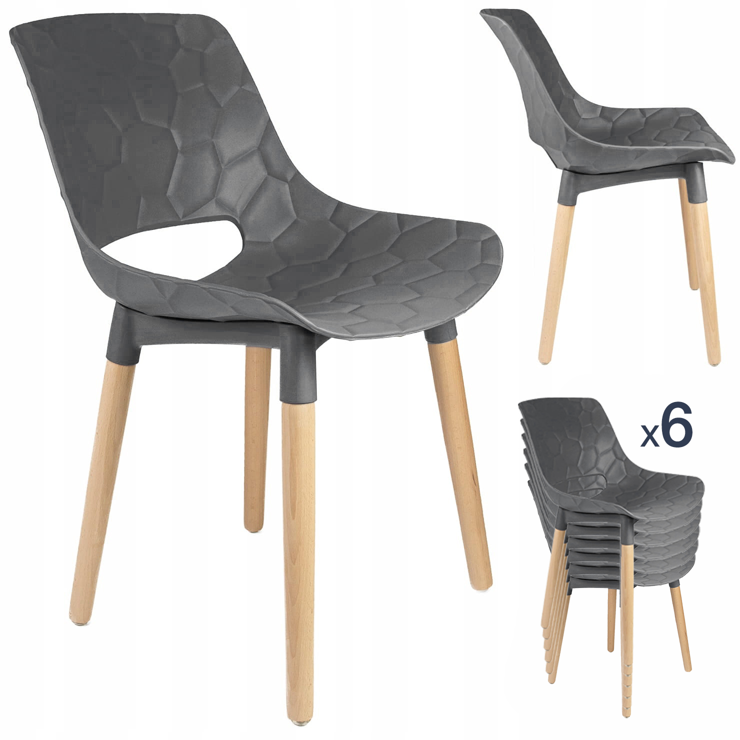 Scaunul are o imprimare geometrică interesantă, iar toate acestea sunt completate de o deschidere ovală în spate.