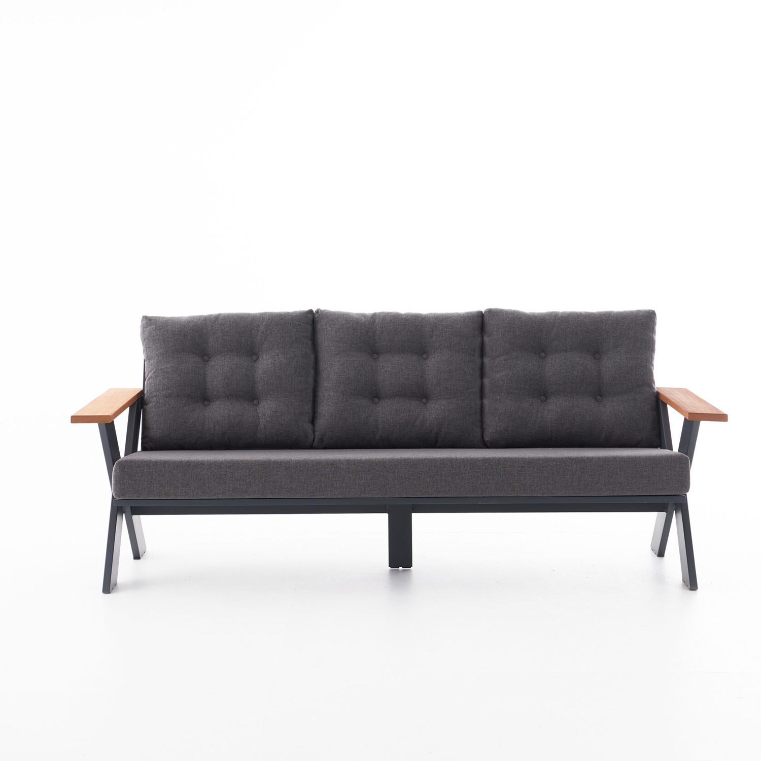Mobilierul de grădină din seria TERRACE este un set elegant și practic pentru un timp confortabil petrecut în aer liber. Setul include două fotolii, o canapea, două pufuri și o masă, oferind astfel un loc confortabil pentru relaxare și socializare în exterior. Mobilierul este fabricat din aluminiu rezistent și lemn, asigurând durabilitate și rezistență la condițiile meteorologice. Culoarea gri conferă setului un aspect modern și stilat, care se integrează ușor în orice grădină sau terasă. Canapeaua are dimensiuni de 200x80x70 cm, iar șezlongul măsoară 80x80x70 cm, oferind spațiu și confort pentru cinci persoane. Masa, cu dimensiuni de 140x80x61 cm, este ideală pentru a așeza băuturi, gustări și alte obiecte necesare. Pernele din poliester adaugă confort suplimentar și sunt ușor de curățat. Blatul din lemn conferă setului un aspect natural și cald, fiind perfect pentru utilizarea în diferite condiții meteorologice. Mobilierul TERRACE este soluția ideală pentru a crea un colț confortabil în grădina sau terasa dumneavoastră, unde puteți savura momente de relaxare și socializare alături de cei dragi. Simplitatea întreținerii și designul elegant fac din acest set un element de bază pentru decorul dumneavoastră exterior.