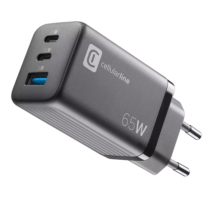 - Încărcător Cellularline Wall Charger GAN, 3 Ports, 65W, Negru