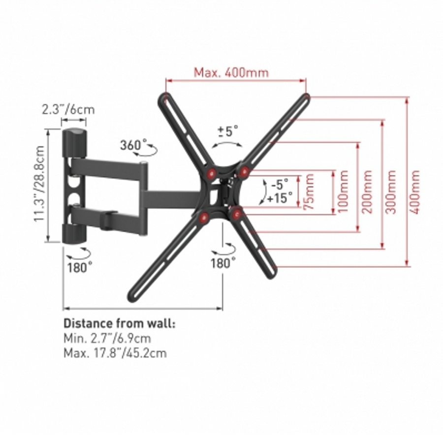 - Suport TV de perete BARKAN BM343, Negru