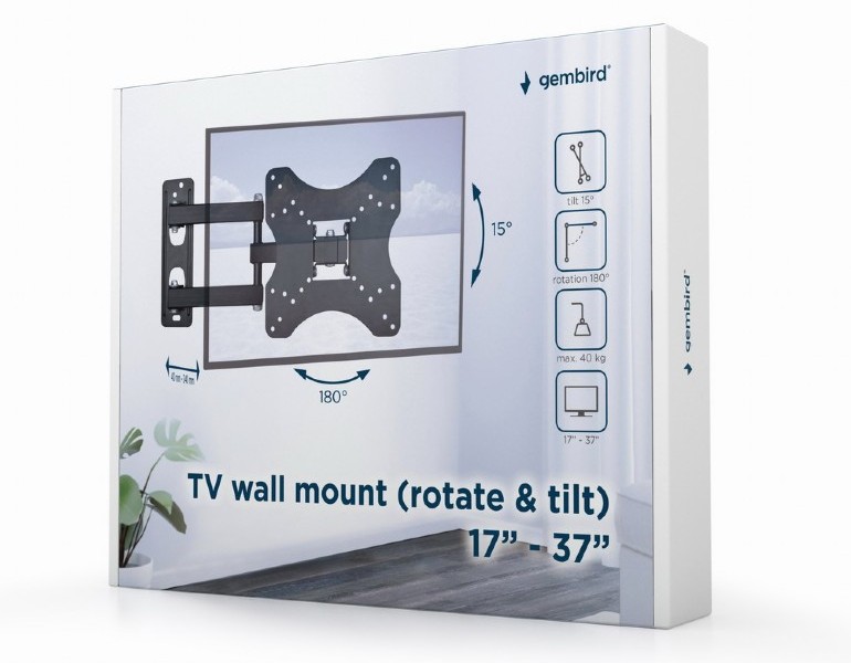 - Suport TV de perete Gembird WM-37RT-01, Negru