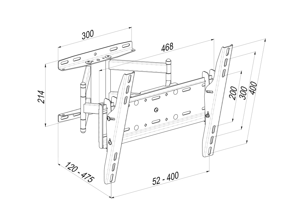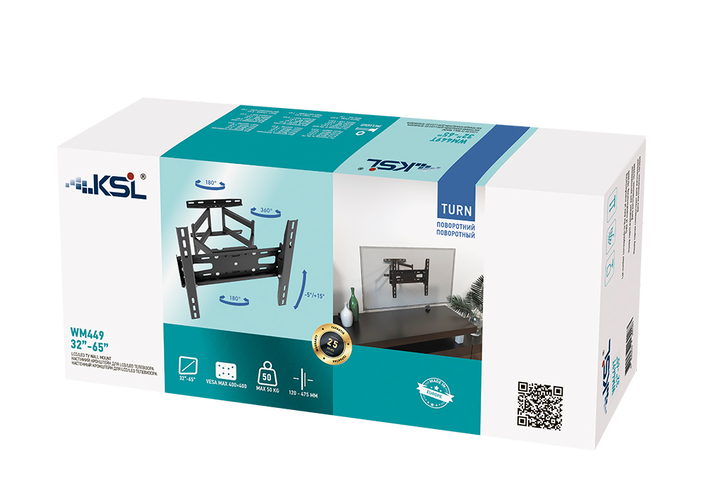 - Wall Mount KSL "WM449Т" Black 32"-65", max.50kg, VESA max:400x400; +15°, TV-wal:100-477mm
