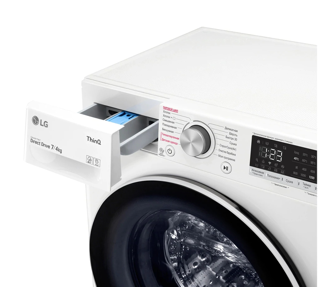 - Mașină de spălat cu uscător LG F2V5HG0W, 7, Alb