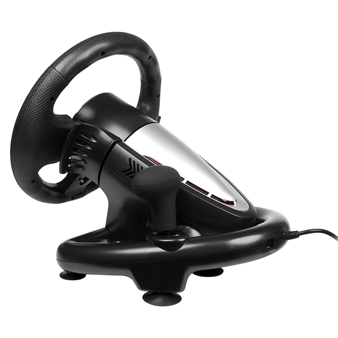 -- Эргономичный руль для игр Диаметр руля – 10” (254 мм) Угол поворота – 180 градусов Поддержка: Windows XP/Vista/7/8 Интерфейс USB Функция виброотдачи для повышения реалистичности. Две оси, 8-позиционный джойстик D-Pad, рычаг переключения передач «Tiptronic», 12 дополнительных клавиш Резиновые вставки в руле для комфортного вождения Резиновые присоски и скоба для надежной фиксации к столу Работа в цифровом и аналоговом режимах Педали в комплекте Тип устройства игровой руль Поддержка ОС Windows XP/Vista/7/8/10 Интерфейс подключения USB Технология связи проводная Режим работы цифровой и аналоговый Оси и джойстики 2 оси, 8-позиционный джойстик, рычаг переключения передач «Tiptronic» Количество кнопок, шт. 12 Функция виброотдачи есть Диаметр руля 10" (254 мм) Угол поворота, градусов 180