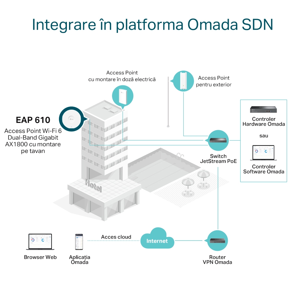 - Punct de acces fără fir TP-LINK EAP610, 574 Mbps, 1201 Mbps, Alb
