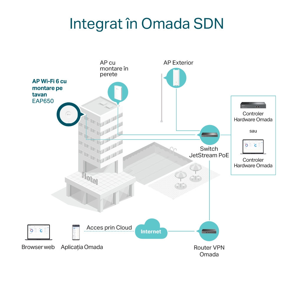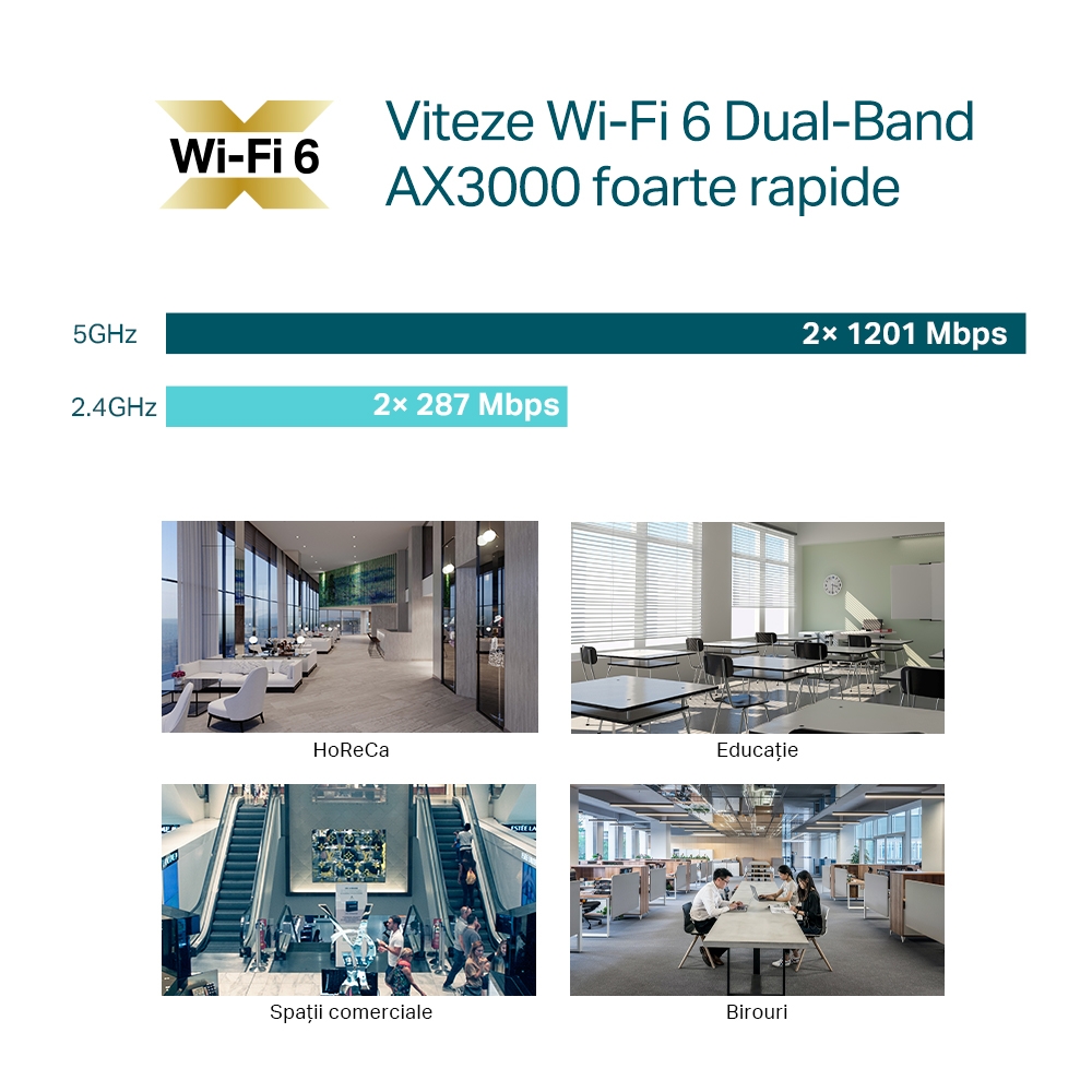 - Punct de acces fără fir TP-LINK EAP650, 574 Mbps, 2402 Mbps, Alb