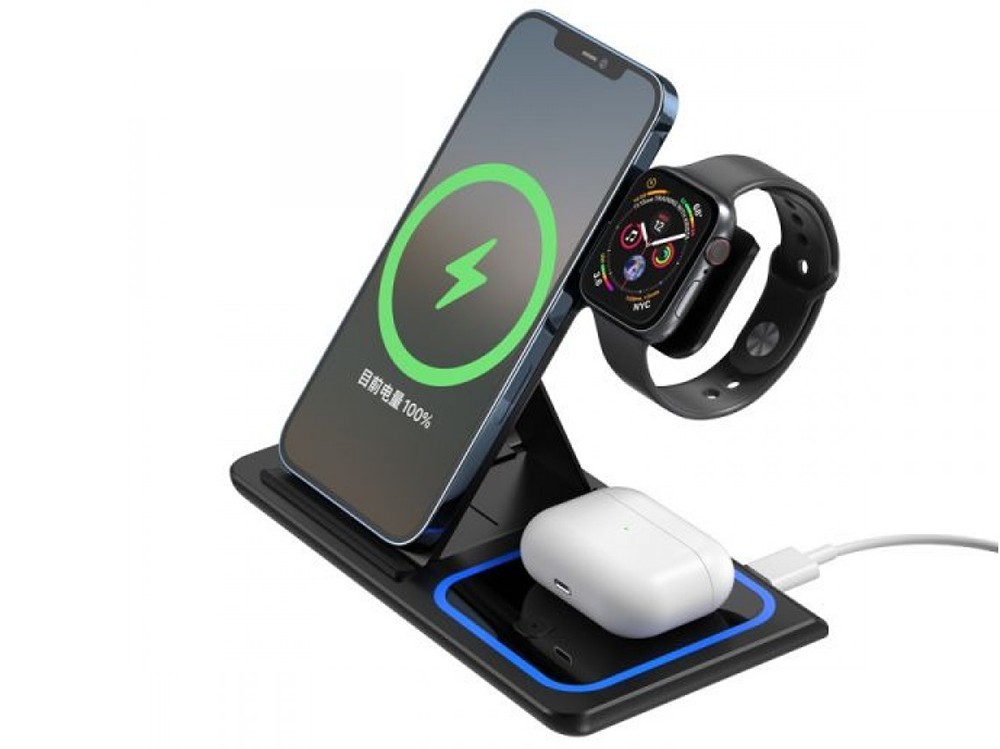 - Wireless Charger XO, 3in1, WX023, Black (apple supporting)