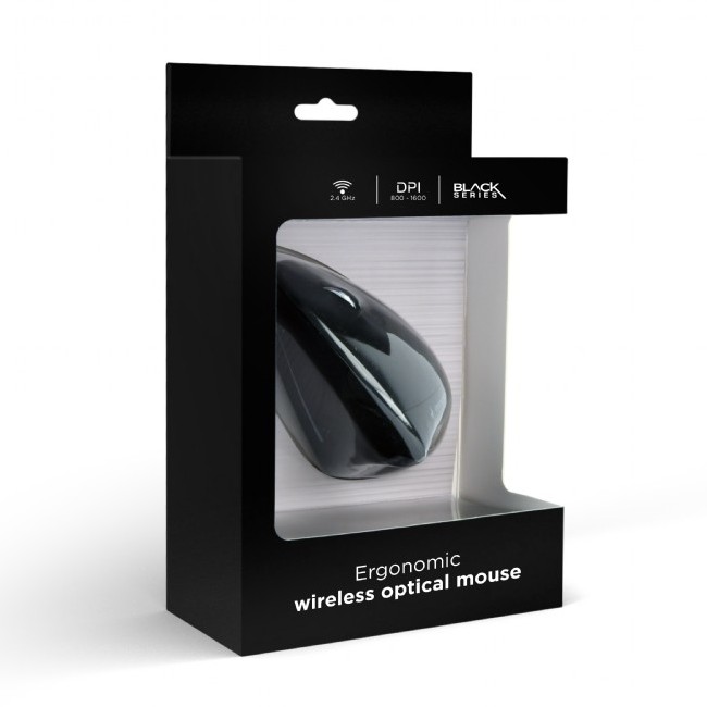 . 6-ти кнопочная беспроводная оптическая мышь с миниатюрным USB-ресивером сигнала Кнопка выбора разрешающей способности датчика (800 - 1600 DPI) Кнопки для web-браузера: вперед\назад Wireless technology: 2.4 GHz, GFSK RF modulation, 80 channels, 32 bit device ID Operating distance: up to 10 m Power class: RF power 3 dBm (max. EIRP) Internal antenna type; antenna gain in dBi (typical): 2 dBi ±1 dBi Optical resolution: 800, 1200, 1600 DPI selectable by the button Power supply: AA battery x 1 pc (not included) Power consumption: 1.5 V DC, up to 15 mA Nano receiver: USB 1.1 compatible, weight 2 g, 6 x 14 x 18 mm Mouse: dimensions 95 x 65 x 36 mm, net weight 84 g (without batteries) Operating conditions: -5...45 Celsius degrees, 10-80 % humidity