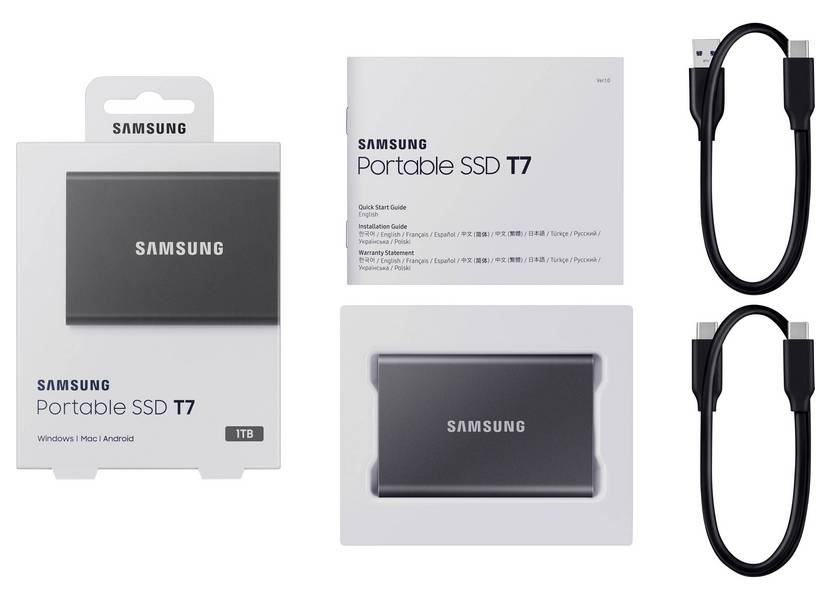 - Внешний портативный SSD-накопитель Samsung Portable SSD T7, 1 TB, Grey (MU-PC1T0T/WW)